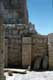 Avenue bordée de colonnes-piliers inclinées en pierre non dégrossies