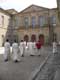 Moines en robe blanche dans l'abbaye ste marie d'orbieu