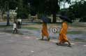Moines en robe orange et parapluie