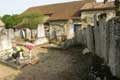 Murs du cimetière de couvercles de sarcophages fichés en terre